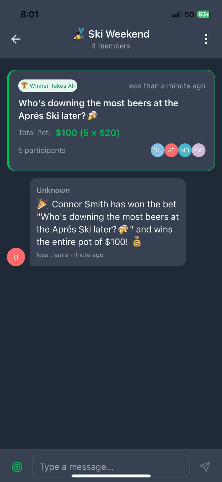 Settle and celebrate: Mark a winner, keep the evidence. Turn bets into unforgettable memories, tracked in your BetMates app.